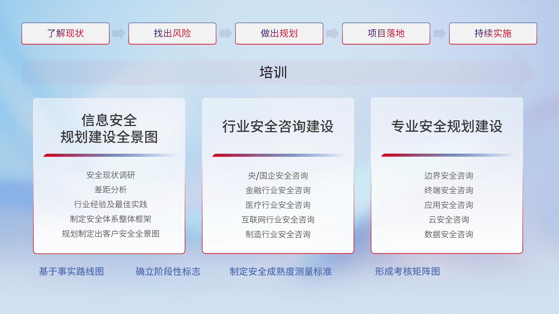 针对客户行业特性,,,将宏观的安全战略和需求,,通过专业的交付服务,,,实现项目落地,,为客户提供标准规范的集成交付服务。。。