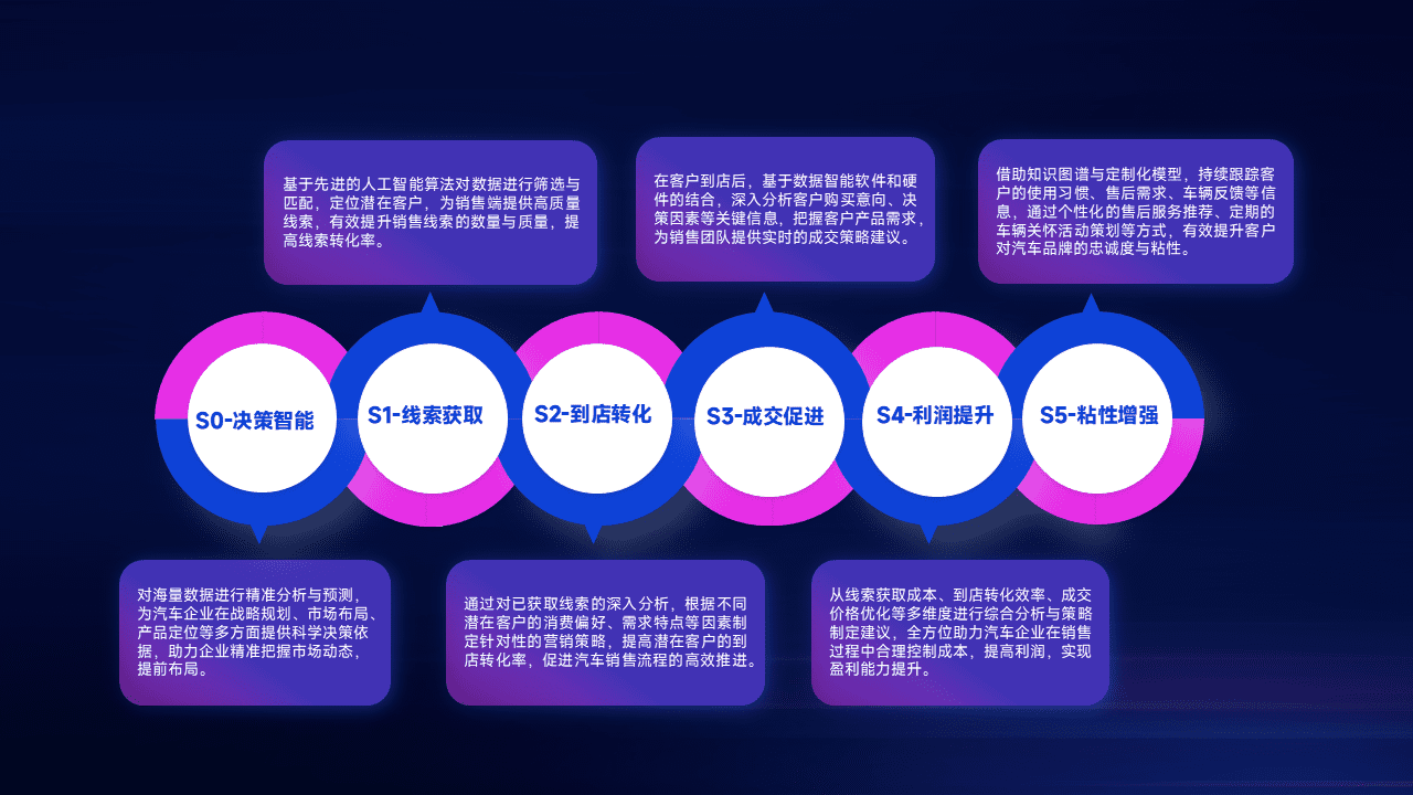 通过拓宽潜在客户来源、、、优化线索分配并提高到店转化率,,以增强销售效率。。同时,,,,利用线索数据不断优化分析模型,,,有效提升转化率,,,,扩大营销影响力。。。